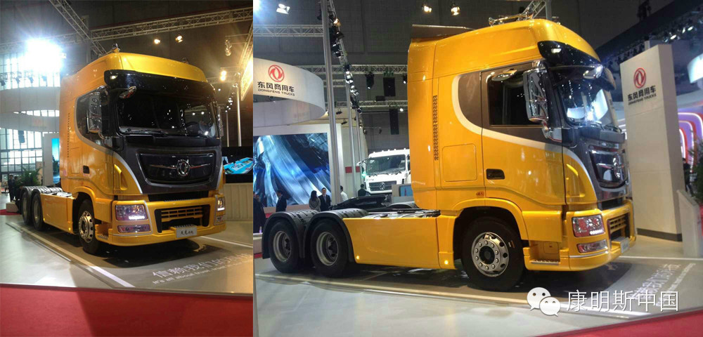 另一边,在东风商用车展台上,黄袍加身的东风天龙旗舰版颇为拉风。这款高效长途物流运输车的动力配置正是康明斯ISZ13升发动机。本次展出的天龙旗舰是东风商用车有限公司新的重卡平台车型,该款产品配备了空气悬架、盘式制动器、电子制动系统、电子稳定装置、发动机制动、缓速器以及整车网络架构等先进技术配置。在一系列的创新技术之上,康明斯ISZ发动机为其提供了强劲的动力输出和稳定的性能表现。