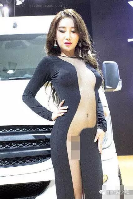 2013年11月28日,广州车展一位模特现场“半裸”出镜。这位穿着“真空装”的女模特在6.1豪车展馆某品牌展区摆“蒲士”任拍照,甚至引来观众合影。