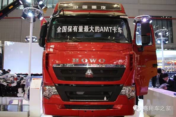 中国重汽展出9款卡车整车、15款零部件,有C7H牵引车、C5H油罐车,T7H AMT牵引车、T5G渣土车、“希尔博”货车底盘随车吊、HOWO轻卡等多款车型;零部件展出了融合中国重汽与德国曼技艺的MC11、MC13大马力发动机以及“智能通”演示系统等。其中T7H AMT牵引车和C7H牵引车绝对是重汽展台两颗耀眼的明珠。